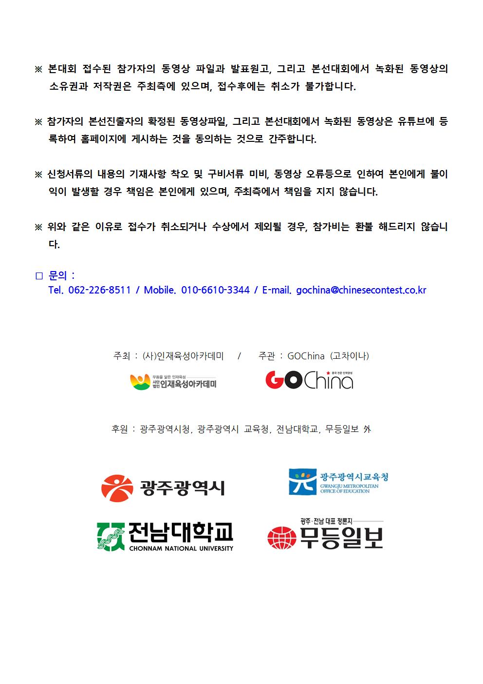 2019 제3회 대한민국 청소년 중국어대회 참가신청서